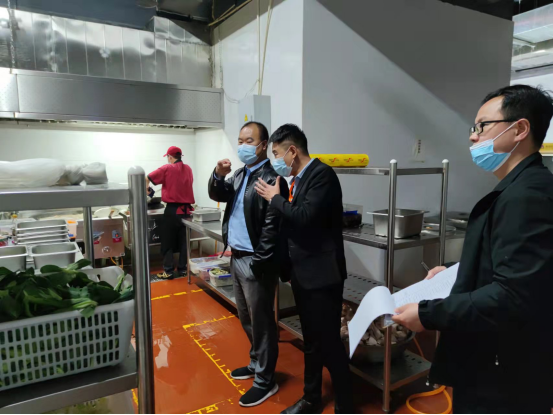 一行人首先到商业街,针对个别商铺内存在苍蝇并且灭蝇灯损坏、食品加工工作人员未规范佩戴口罩、后厨垃圾清理不及时等问题,立行立改。能立即整改的当场整改,不能立即整改的要求他们限期整改。随后来到学校食堂检查食堂卫生、留样、台账登记、食品原材料进货渠道等情况。针对食堂存在的台账记录不及时和员工健康证更新滞后、荤素刀具混放等问题,要求食堂立即整改并敲定时间检查整改情况。