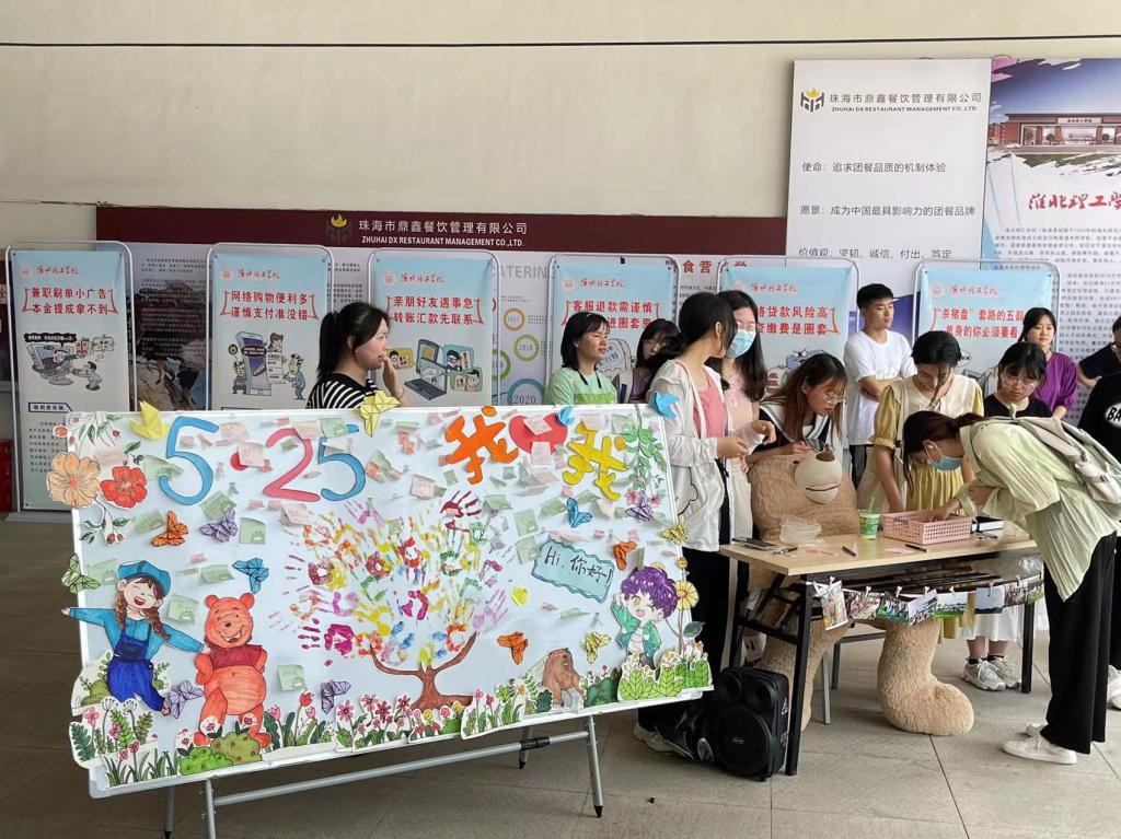 为引导学生关注自我心理健康,增强心理保健意识,塑造同学们积极乐观的心态。5月25日,由校心理健康教育与咨询中心主办,校心理协会承办的“5.25,我爱我”心理健康日活动在第一食堂门口成功举办。校团委负责人刘帅克和校心理健康教育与咨询中心郑雯雯、郑清洋和陈曦老师出席本次活动。