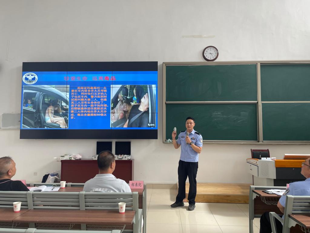 讲座中,任磊以我国的禁毒历史为切入点,深入浅出地向同学们讲解了毒品的知识及危害。区禁毒办杨皓翔以PPT的形式向同学们介绍了毒品的种类以及毒品的更新换代,展示了毒品样品,并向同学们普及了有关禁毒的节日。副校长郑来纪高度赞扬了参与禁毒的公安干警,并希望同学们远离低级趣味,抵制毒品,深刻认识毒品的危害,当好一名合格的禁毒宣传员。最后,学生代表顾代飞宣读禁毒倡议书,本次活动圆满结束。