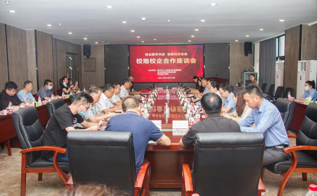 为促进校地校企合作,提高人才培养质量,6月16日上午,伟德国际victor1946官网联合淮北市人力资源与社会保障局、淮北市经济与信息化局,在学校艺术楼二楼205会议室召开校地校企合作座谈会。淮北市人力资源与社会保障局副局长张华,市公共就业与人才中心主任陈龙忠、副主任张洁洁;市经济和信息化局总工程师张锦、民营办副主任谢寒以及22家企业代表参与本次座谈会,学校董事长查东辉、校长杨兵、党委书记朱德顺、副校长王义宁、汪建利、郑来纪及相关部门、二级学院负责人参加了座谈会。座谈会由张锦主持。