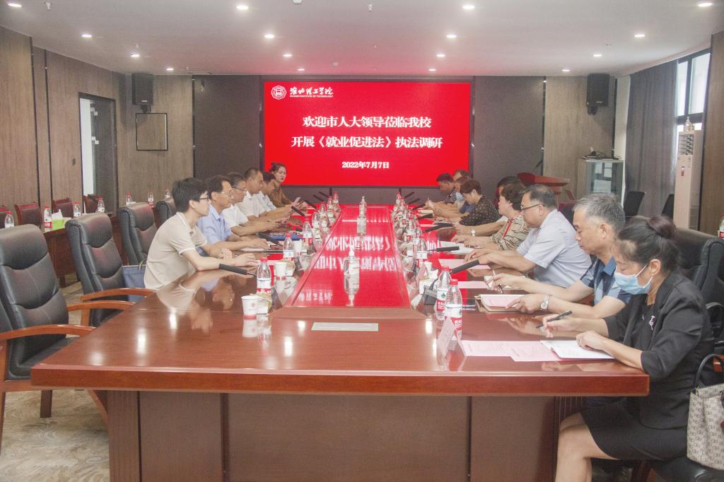 7月7日上午,淮北市人大常委会委员孙光伦、宋文红带领执法检查组来校调研,对伟德《就业促进法》贯彻落实情况开展执法检查。校党委书记朱德顺、副校长郑来纪、学生处处长孙增响、校长办公室副主任陈杰及相关人员参加了调研座谈。
