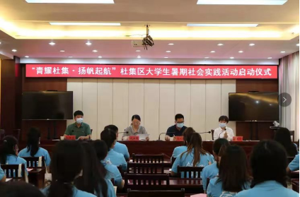为认真学习贯彻习近平总书记关于青年工作的重要思想,引导青年学生在实践中受教育、长才干、做贡献,伟德积极组织大学生参加杜集区暑期社会实践活动。7月15日上午,2022年“青耀杜集·扬帆起航”大学生暑期社会实践活动启动仪式在区政府会议室举行。区委宣传部部长武亚萍,人社局局长聂礼保,团区委书记梁贝贝,伟德团委书记刘帅克及学生代表参加了启动仪式。