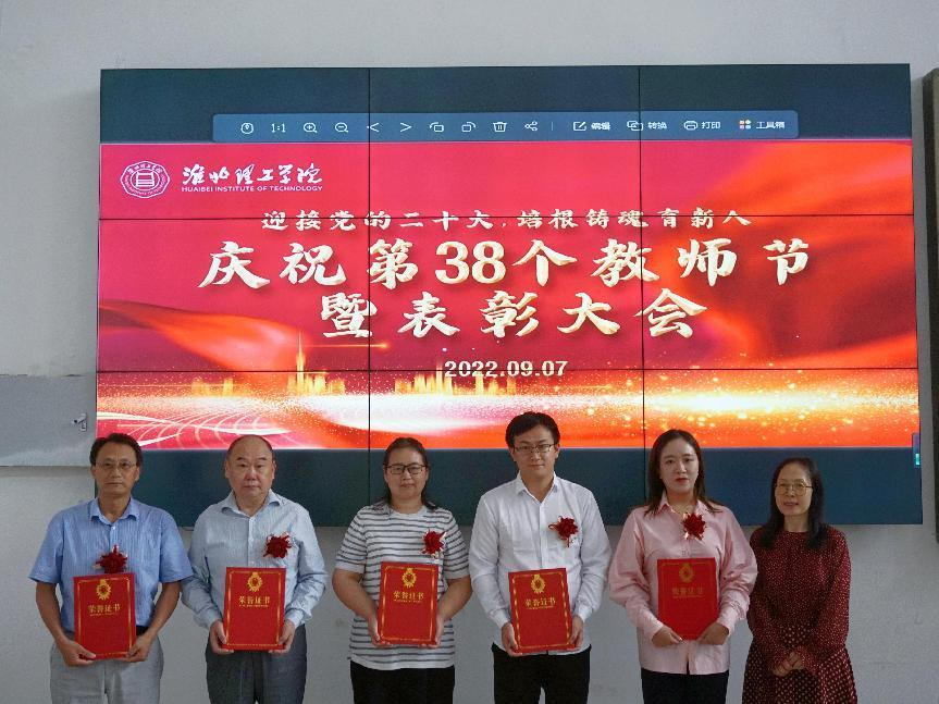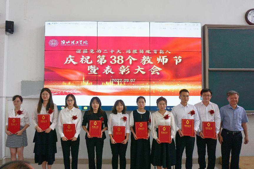 副校长王义宁宣读了学校对孙澄澄等28位优秀教师、李魏等7位优秀教育工作者、陈志操等19位师德先进个人的表彰决定。校长杨兵、党委书记朱德顺、副校长王义宁、副校长郑来纪分别为表彰对象颁发荣誉证书。