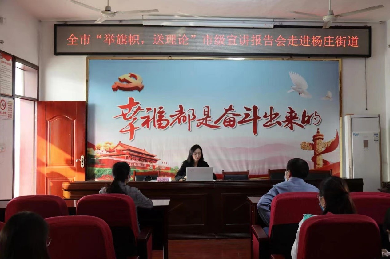 为把学习贯彻习近平总书记在省部级主要领导干部专题研讨班上重要讲话精神、《习近平谈治国理政》第四卷不断引向深入。伟德国际victor1946官网马克思主义学院刘奔前和孙澄澄两位老师受到中共淮北市委宣传部中共淮北市委讲师团的指派,分别走进东街道和杨庄街道开展“举旗帜 送理论”专题宣讲活动。
