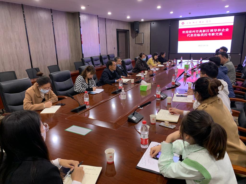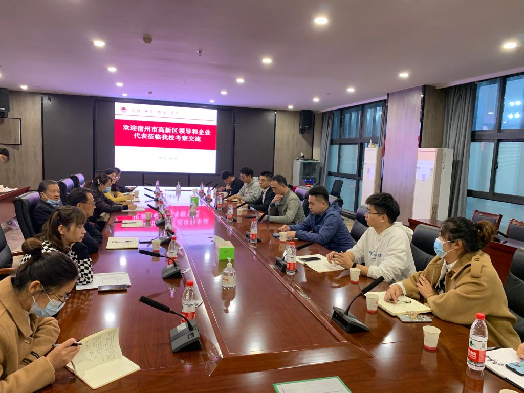 吕晓明介绍了宿州市高新区园区规模、产业布局、重点企业等相关情况,尤其是高新区云计算、智能制造产业对人才的需求,希望与学校有更广泛、更深入的合作。