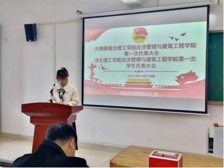校团委书记刘帅克代表学校向大会的召开表示热烈祝贺,向全体团学代表致以亲切的问候。他高度赞扬了经济管理与建筑工程学院团总支一年来的工作成绩,同时对学生代表提出三点希望:一、广大青年要好好学习,努力工作,拼搏奋斗,争做实现中华民族伟大复兴的主力军;二、要坚定理想信念,把握正确方向,成长为有理想、敢担当、能吃苦、肯奋斗的新时代好青年;三、要刻苦学习进步,多读书、读好书,学理论、学文化、学科学、学技能。肩负使命,共同谱写伟德国际victor1946官网共青团工作的新篇章!