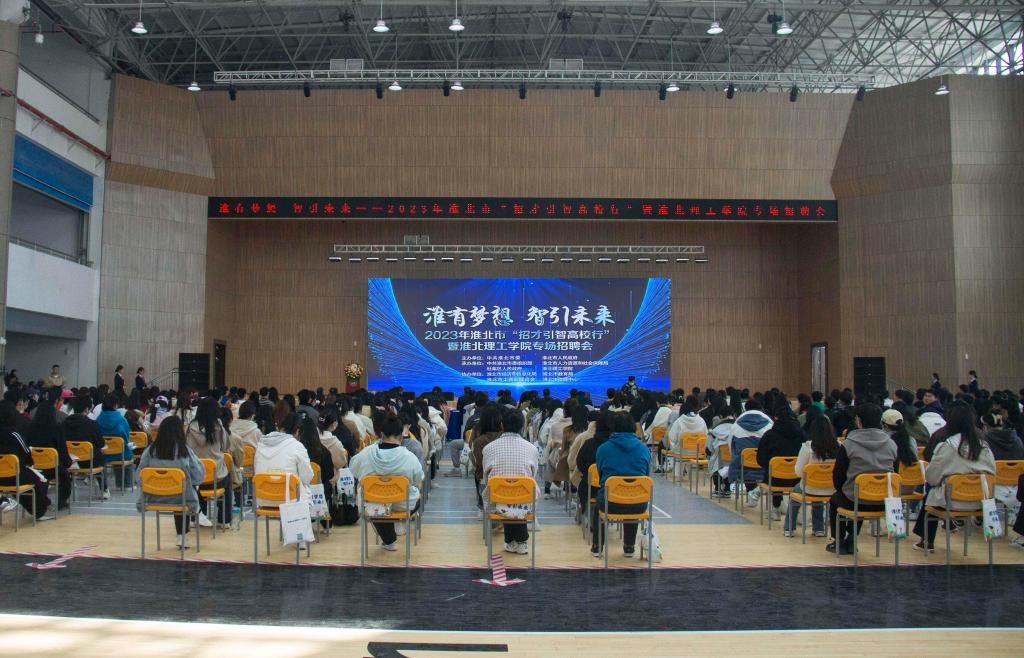 为深入贯彻党中央、国务院和省委、省政府“稳就业”“保就业”决策部署,积极做好高校毕业生就业工作,抓住高校毕业生春招“黄金期”,搭建用人单位与高校毕业生充分洽谈交流平台,积极为淮北市发展输送应用型人才,3月14日上午,“淮有梦想 智引未来”--2023年淮北市“招才引智高校行”招聘活动在学校成功举办。淮北市人大常委会副主任张香娥,淮北市政府副市长姚珂,淮北市人大社会建设工作委员会主任孙光伦,淮北市人民代表大会社会建设委员会副主任、民盟市委会副主委宋文红,市政府副秘书长王江等市领导及其他单位负责人莅临活动现场。校长杨兵,校党委书记朱德顺,副校长汪建利、郑来纪,各二级学院院长、书记、副书记、书记助理、毕业班辅导员,学生处(就业处)工作人员及2023届毕业生共同参加。开幕仪式由王江主持。