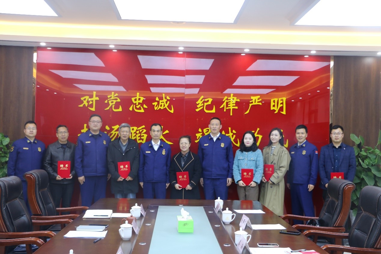 此次合作共建活动现场与两家社会实践基地签订共建协议,并在双方代表的共同见证下,吴玲分别给两个合作单位进行了“社会实践基地”的授牌。相山区消防救援大队还聘请了马克思主义学院专家学者做他们消防救援队的思想政治工作的导师,并现场颁发了聘书。