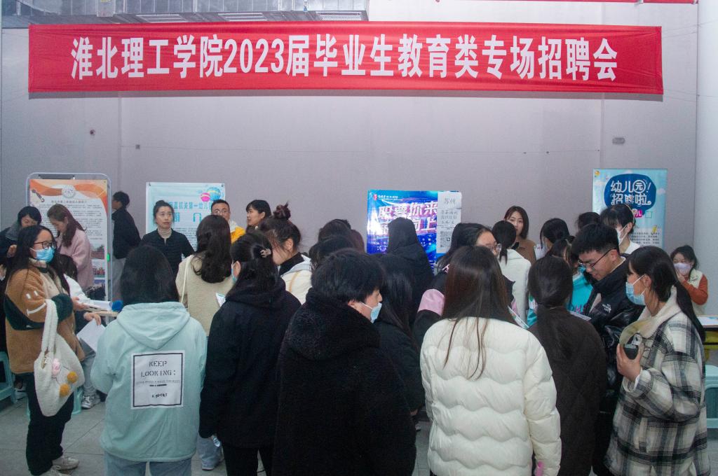 3月22日下午,学校2023年春季教育类专场招聘会在艺术楼一楼大厅举行。苏州学思堂教育科技有限公司、淮北市市直机关第一幼儿园、淮北市杜集区东山路学校、淮北市烈山区英杰幼儿园等21家单位参与招聘,提供教育类相关工作岗位300多个。