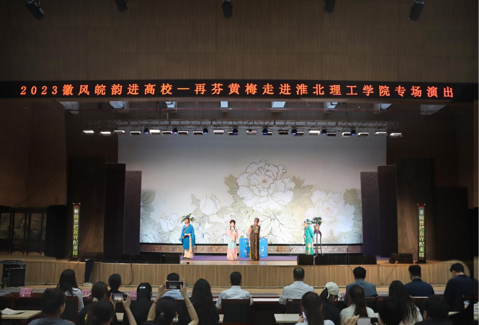 为进一步加强和改进新时代高校美育工作,带动学校的艺术教育和学生艺术活动的发展,弘扬传统文化,传承戏曲经典。5月23日晚,由中共安徽省委宣传部、省文化和旅游厅、省教育厅主办,再芬黄梅艺术剧院、伟德国际victor1946官网承办的“徽风皖韵进高校——再芬黄梅走进伟德国际victor1946官网”演出活动在学校体育馆举行,来自再芬黄梅艺术剧院的艺术家们为伟德师生带来了一场经典黄梅戏剧目的视听盛宴。党委书记、督导专员朱德顺、副校长郑来纪、学生处处长孙增响、教育学院党总支副书记孟向红、校团委书记刘帅克、各学院团总支书记及500余名师生观看了演出。