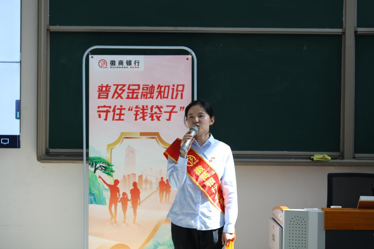 讲座开始前,工作人员组织现场同学参加徽商银行线上金融防电诈知识答题活动,并为成功答题的同学现场发放礼品。