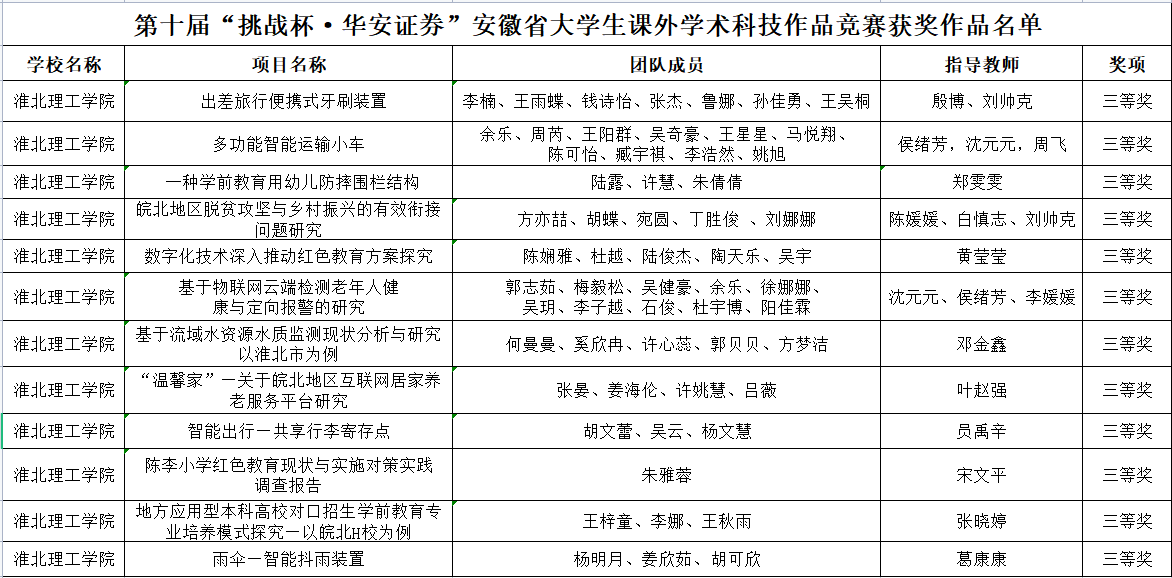 本次“挑战杯·华安证券”安徽省大学生课外学术科技作品竞赛,是伟德自转设以来首次参加。自去年11月启动以来,学校成立大赛筹备组,制定大赛实施方案及评审办法。学生处、科技处、教务处、校团委等相关部门紧密配合,积极发动,召开专题工作推进会,开展各类竞赛宣介和系列培训。经过资格审查、院级选拔、校级复审、专家盲审函评等环节择优遴选出15件作品参加安徽省决赛。