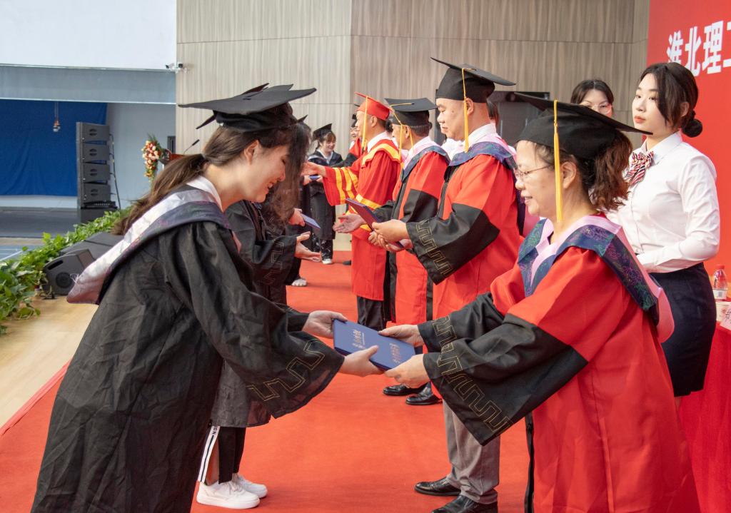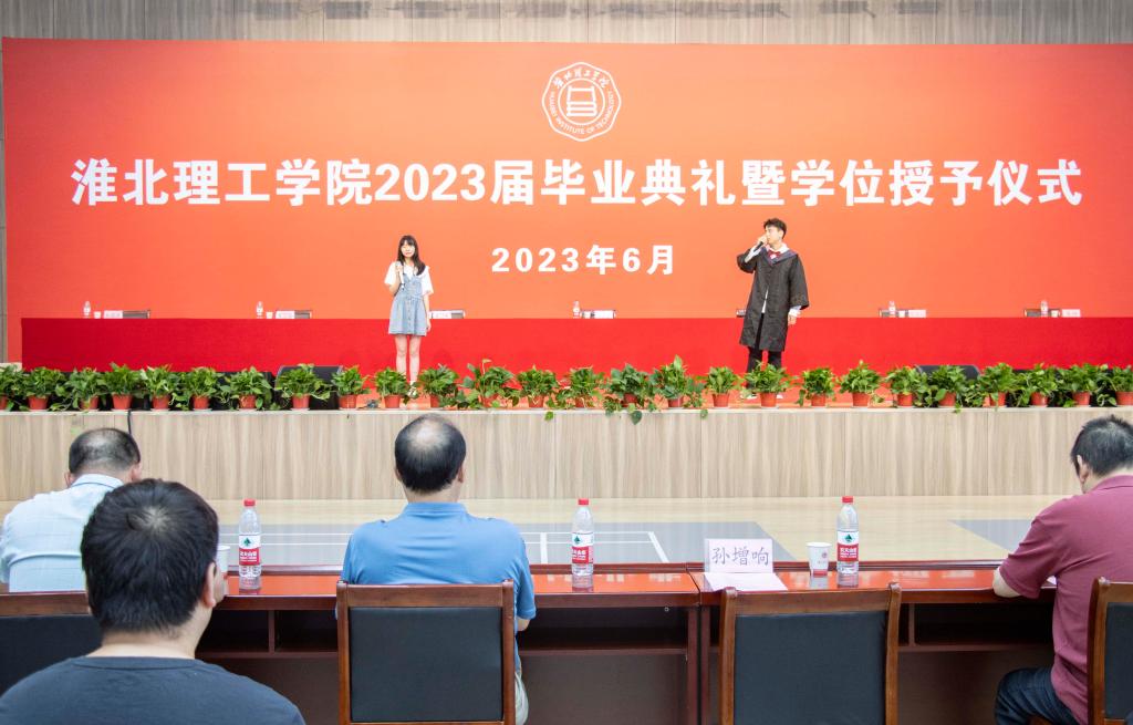 毕业生代表教育学院应用数学1班苗雪静同学发言。她重温了在伟德国际victor1946官网两年求学的美好记忆,并感谢母校提供了学习求知的环境,培养学生们坚守初心的执着和心怀家国的担当,“穷理 践实 精工 笃行”的校训将深深烙印在淮理学子的心里,不断勉励莘莘学子树立鸿鹄之志,争做时代先锋,以拳拳赤子之心谱写辉煌的人生华章。