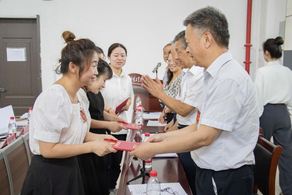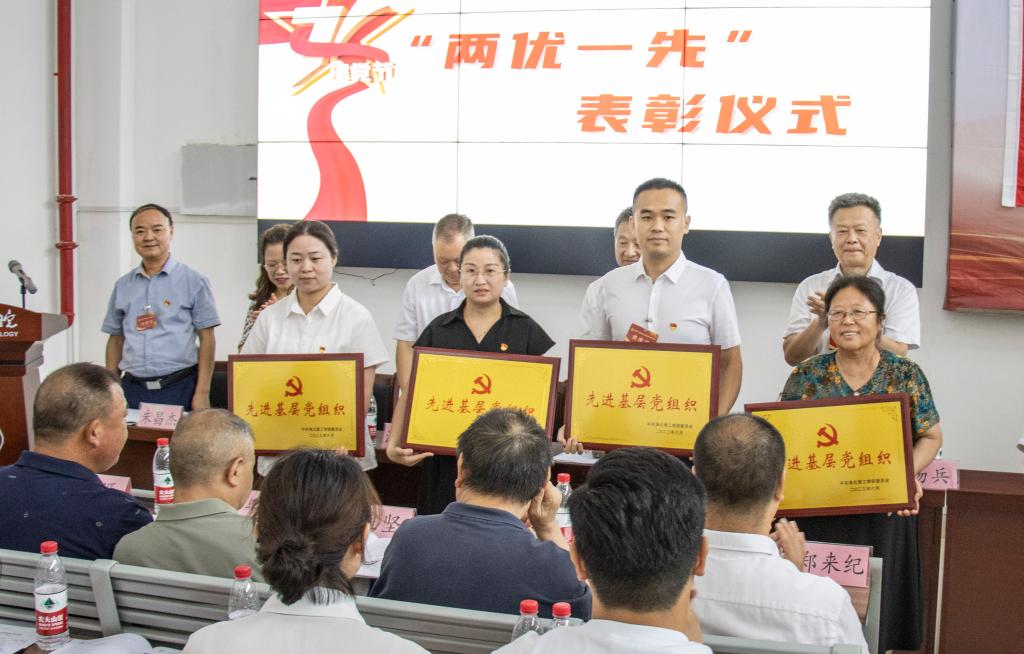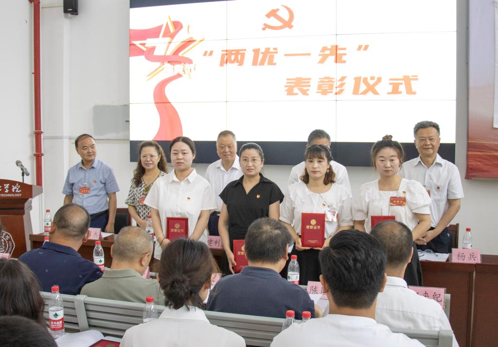 在欢快的乐曲声中,学校党委班子成员为获奖的先进基层党组织、优秀共产党员、优秀党务工作者颁发证书和奖牌。