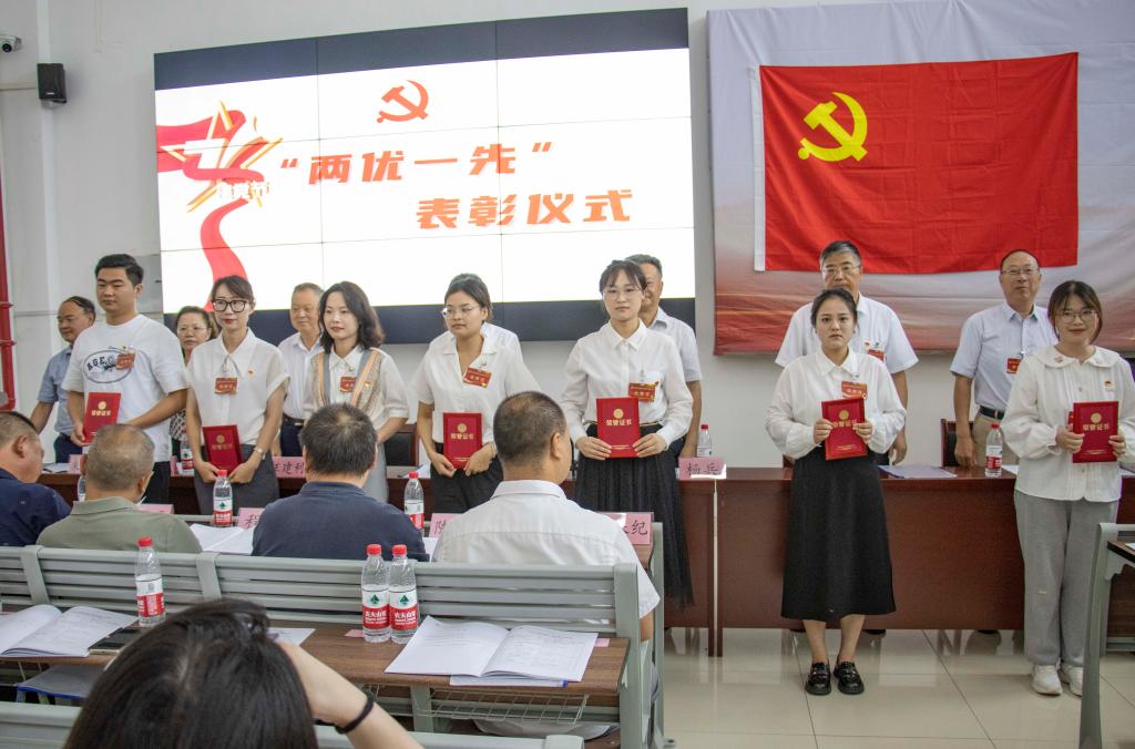 表彰大会结束后,全体党员举起右手,面向党旗庄严宣誓,“我志愿加入中国共产党,拥护党的纲领,遵守党的章程……”,铿锵的誓词,郑重的承诺,使全体党员更加坚定了以实际行动践行誓词的信心和决心。