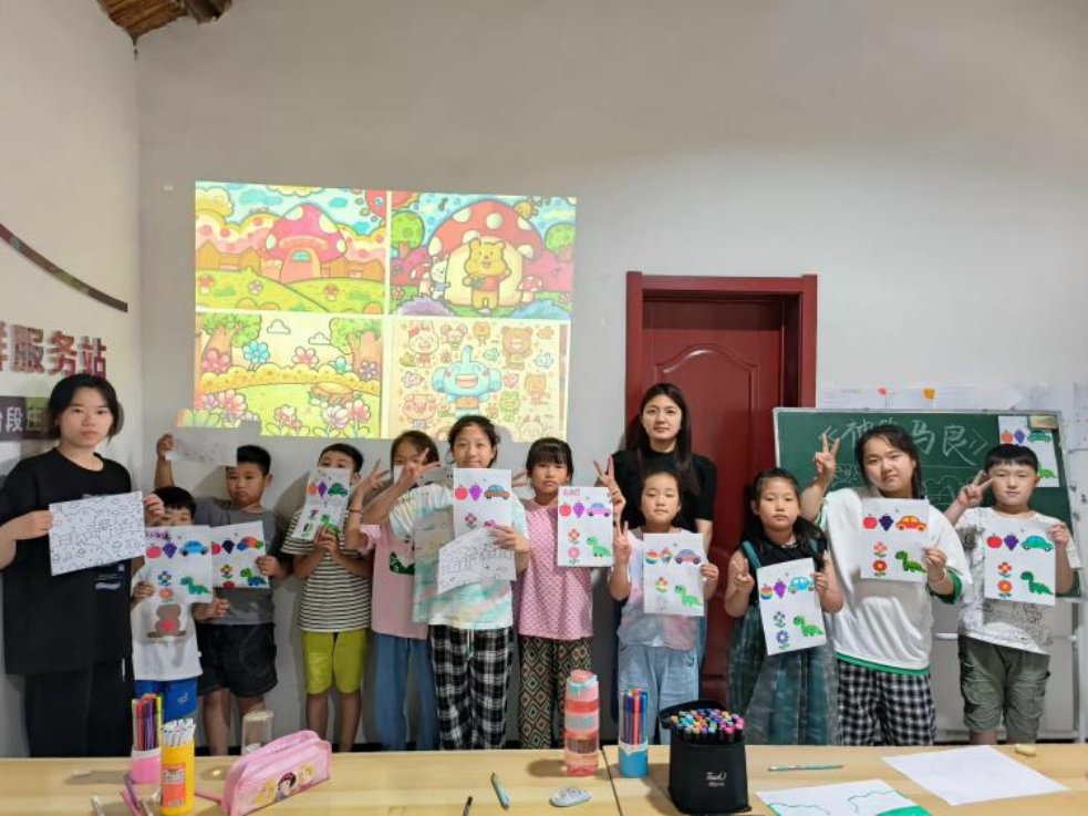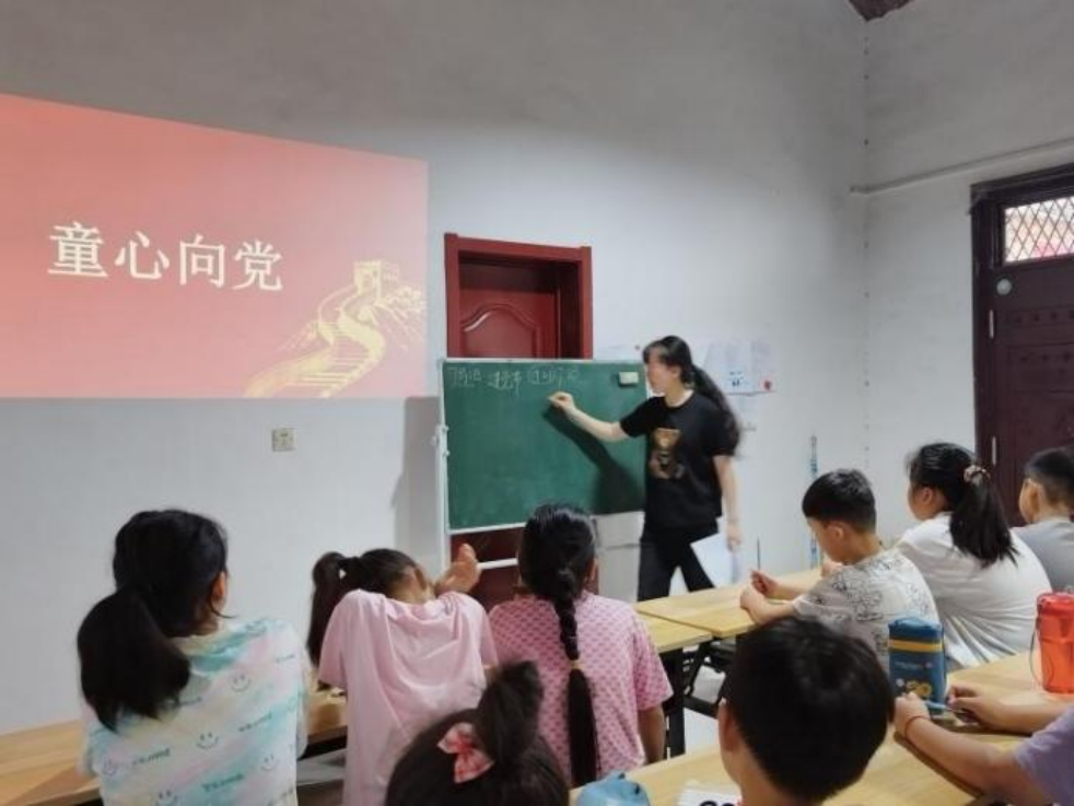队员们根据当地的资源及生源情况,分别开设了大班、小班两个班级。为了促进党史教育,宣扬红色文化,以童心唱党心。志愿者们分别为大班、小班开设了《童心向党》、《童语向党》、《我爱北京天安门》等党史教育课程。