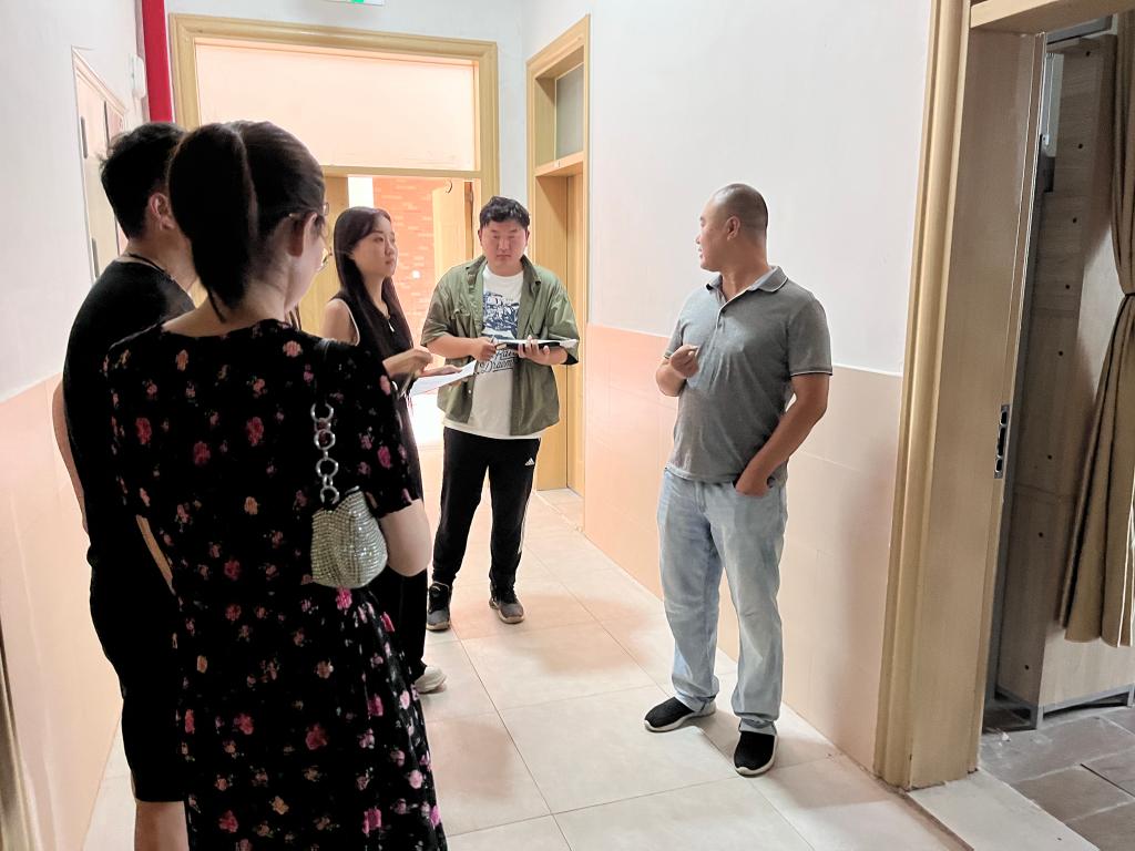 第二组在党委书记朱德顺带领下对学生宿舍水电、门窗、衣柜、床铺、防水、卫生等情况进行认真检查,并对于之前大检查中发现的存在卫生环境差、防水等问题的宿舍进行重点督查,督查问题解决落实情况。对于检查中发现的宿舍楼层中间杂草未除、建筑材料堆放不整齐等问题,朱德顺要求相关部门立即整改处理,要求各相关单位和各二级学院及时解决学生反映的问题,为新学期的到来提供良好环境。