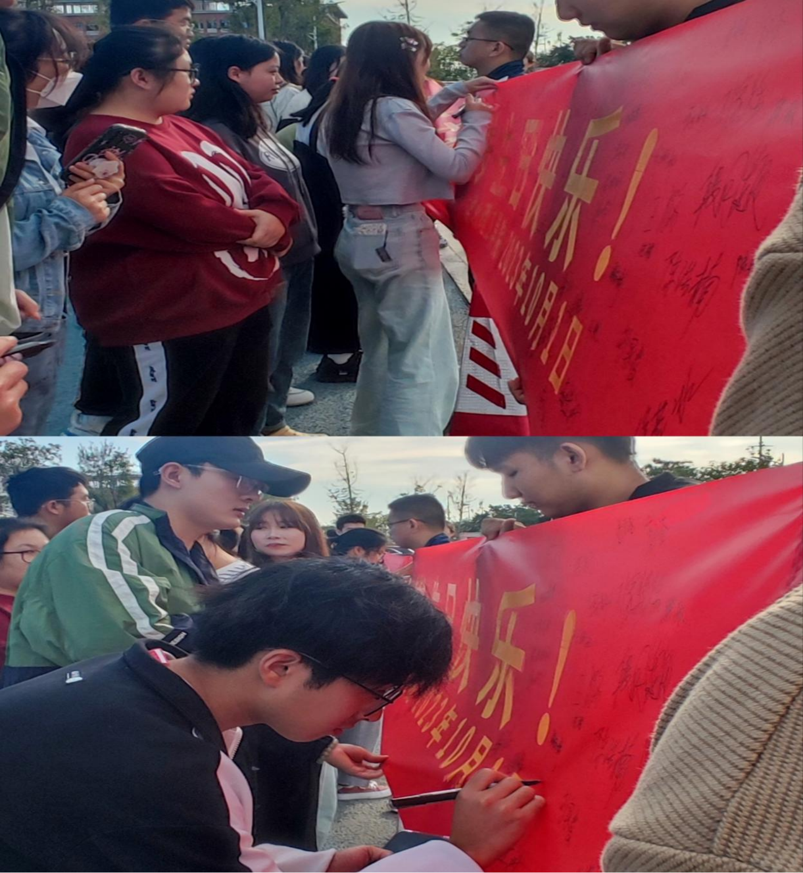 升旗仪式后,同学们在“祝伟大的祖国74岁生日快乐”横幅上签名,签字活动强化了同学们的爱国心,激励着同学们奋发图强,以崭新的面貌迎接新的学习和生活。