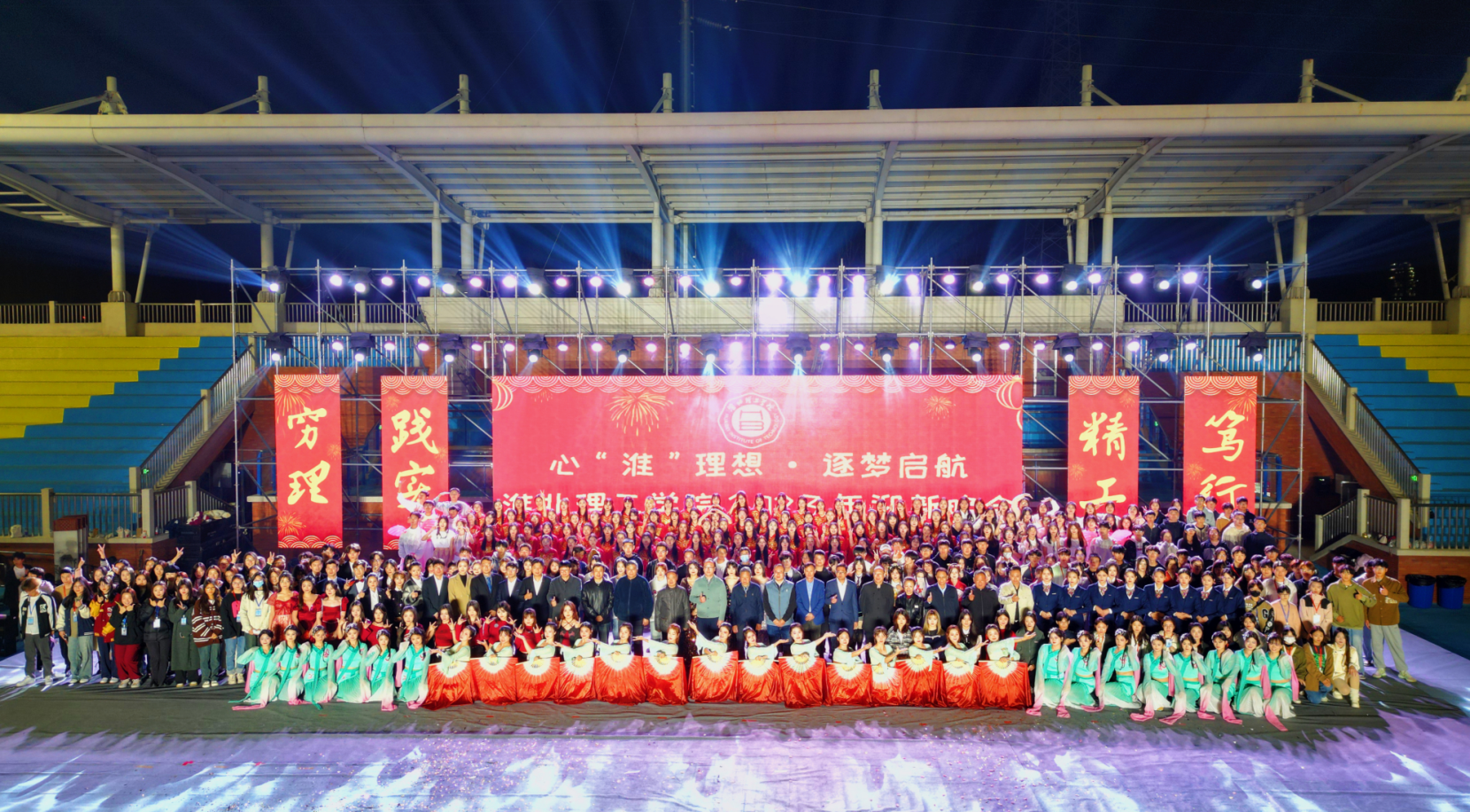 星光点亮梦想,青春扬帆起航。11月8日晚,“心‘淮’理想·逐梦启航”伟德国际victor1946官网2023年迎新晚会在体育场隆重举行。校党委书记朱德顺,副校长郑来纪,各部门、各二级学院负责人及全体辅导员,2023级全体新生到场观看。