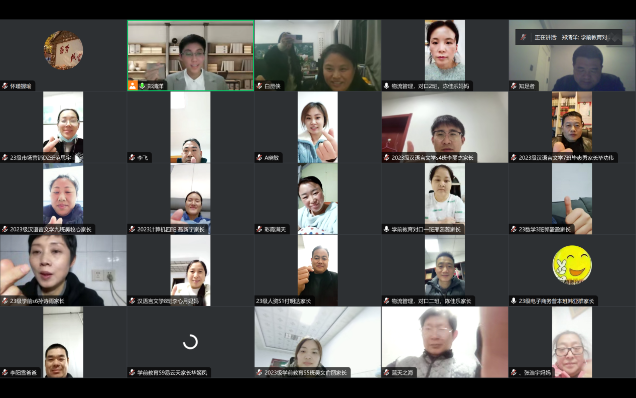 最后郑清洋倡议,让家校携手,关注学生心理健康。通过本次活动,再一次拉近了家校距离,密切了家校联系,提高了家长对学生心理问题的认识,共同助力学生身心健康发展。