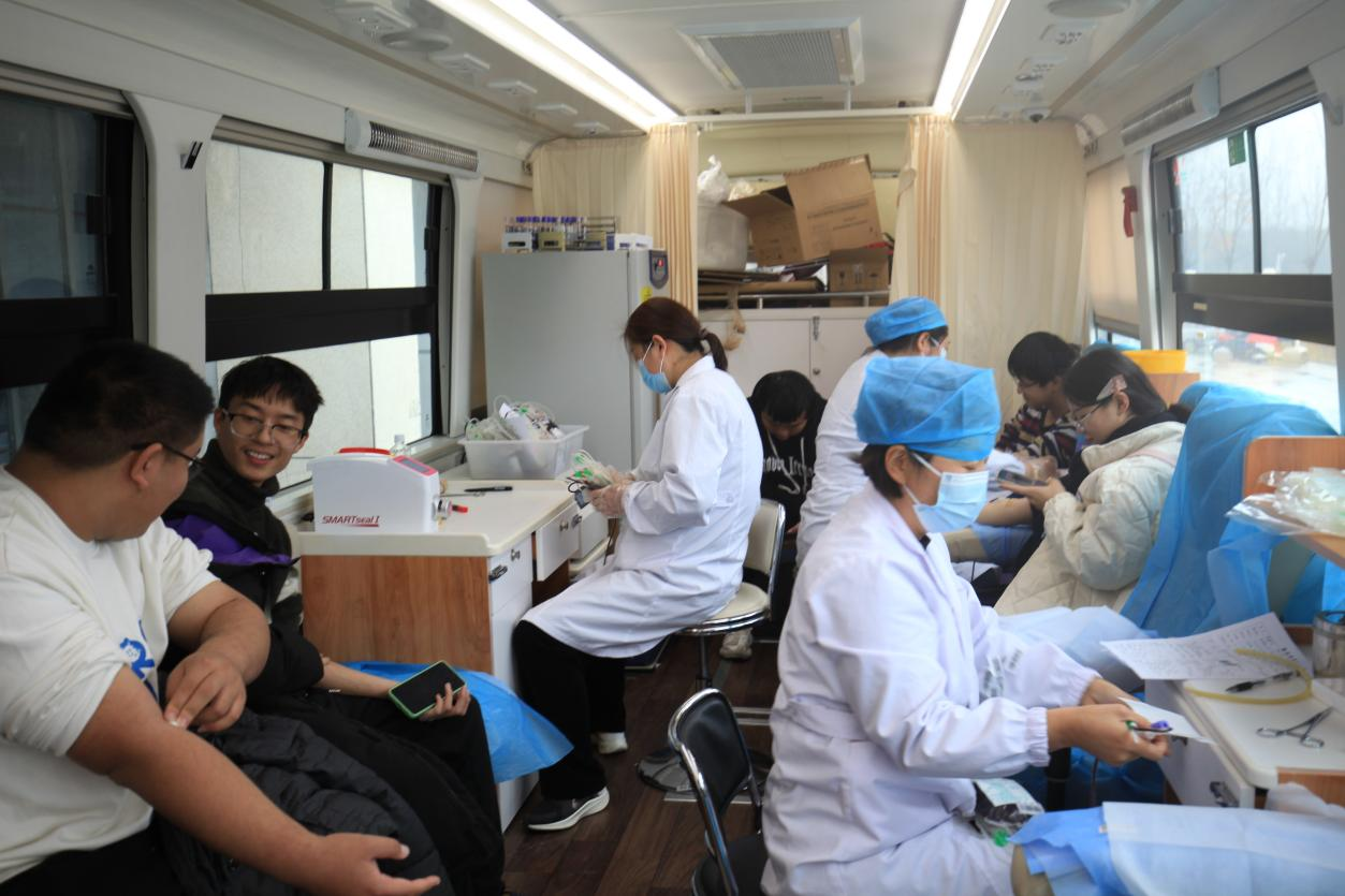 12月13日,淮北市中心血站联合校团委开展冬季高校无偿献血活动,用青春的力量担起社会责任。活动期间,全校150多名师生参与献血,献血总量近5万毫升。
