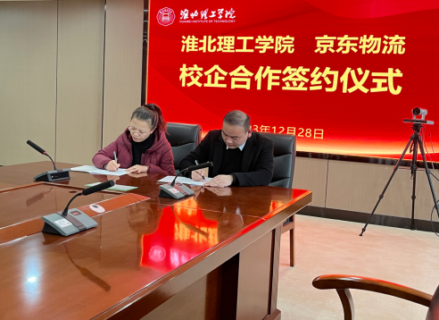 在热烈的气氛中,吴玲与宋鹏代表校企双方共同签署了校企合作协议;宋鹏和孙增响代表校企双方进行“京东物流集团校企共建人才培养基地”牌匾的授接,这标志着双方的合作迈向了实质性的阶段,也意味着双方将在未来的日子里携手共进,共同发展。