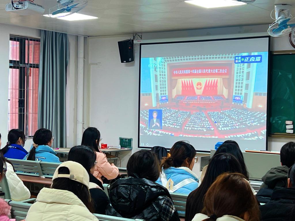 开幕会直播收看现场,师生们全神贯注,热情高涨,不时响起阵阵掌声,以表内心激动与喜悦。同学们通过认真聆听报告,对报告要点进行详细记录,进一步加深了对党和国家政策的了解和掌握,提高了政治觉悟和思想认识。同时大家交流心得体会,并就自己关心的话题展开思想讨论和交流。