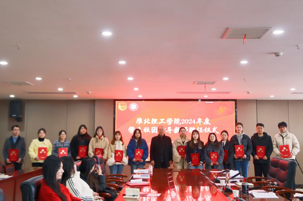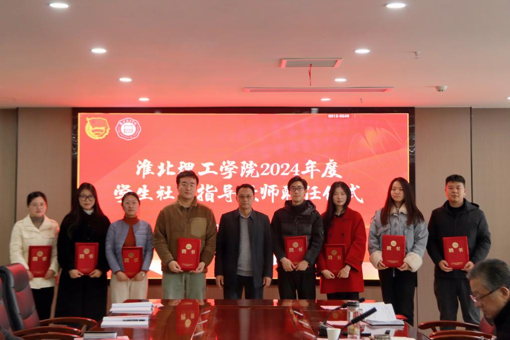 校党委书记朱德顺、党建办、学生处相关职能部门负责人为2024年度学生社团指导老师颁发聘书。
