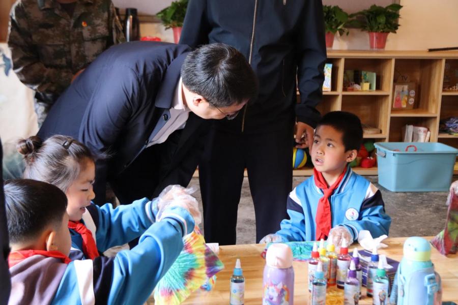 调研中,陈明生一行参观了实践基地各类实践设施,详细询问了梧桐村大学生实践基地基本情况,与基地的支教学生、小学员们进行深入交流,了解了他们的课程活动情况、遇到的困难及未来发展规划。