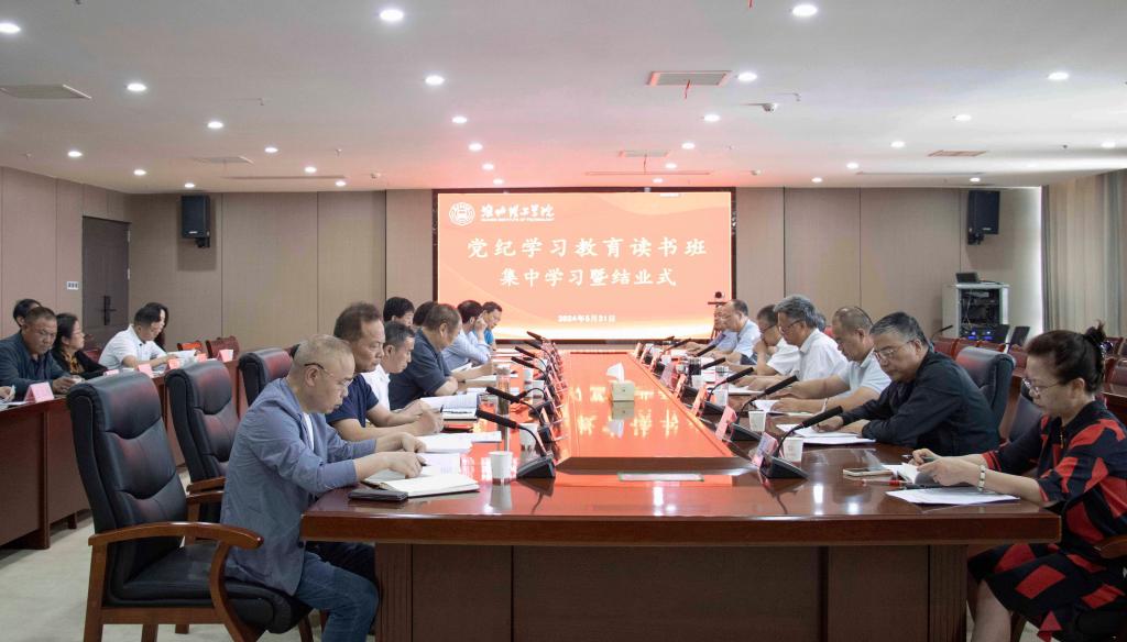 5月31日,学校举行党纪学习教育读书班集中学习暨结业式,校领导、党委委员、纪委委员,各党总支(直属党支部)书记、副书记,中层正副职负责人参会。会议由党委书记朱德顺主持。