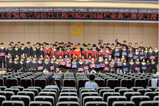 仲夏时节,骊歌渐响;莘莘学子,奔赴九州。6月12日下午,电子与信息工程学院2024届毕业典礼暨学位授予仪式在学术报告厅隆重举行。校长杨兵、教务处处长陈国平、电子与信息工程学院院长朱昌杰、校学位委员会委员吕虹教授、电子与信息工程学院学位委员会委员及院长书记助理出席。毕业典礼由朱昌杰主持。