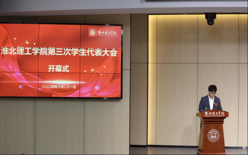 6月21日,伟德国际victor1946官网第三次学生代表大会在行政楼报告厅召开。校党委书记朱德顺、安徽省学生联合会驻会执行主席汤静羽、校党建办主任付金沐、学生处处长孙增响、校团委全体成员和各二级学院团总支书记、副书记及200名学生代表出席大会开幕式。