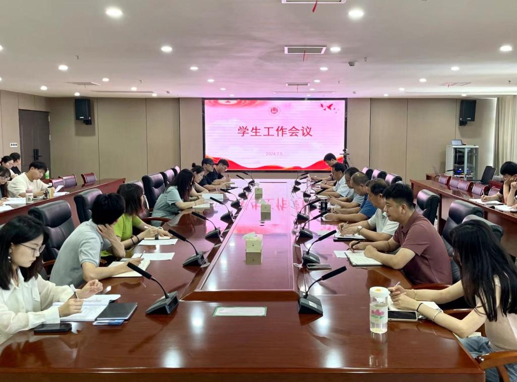 招生办主任、学生处副处长张拓汇报了目前毕业生就业情况,并对下一阶段就业工作进行安排。各学院就期末学生工作开展情况及暑期留校学生管理相关问题进行交流发言。