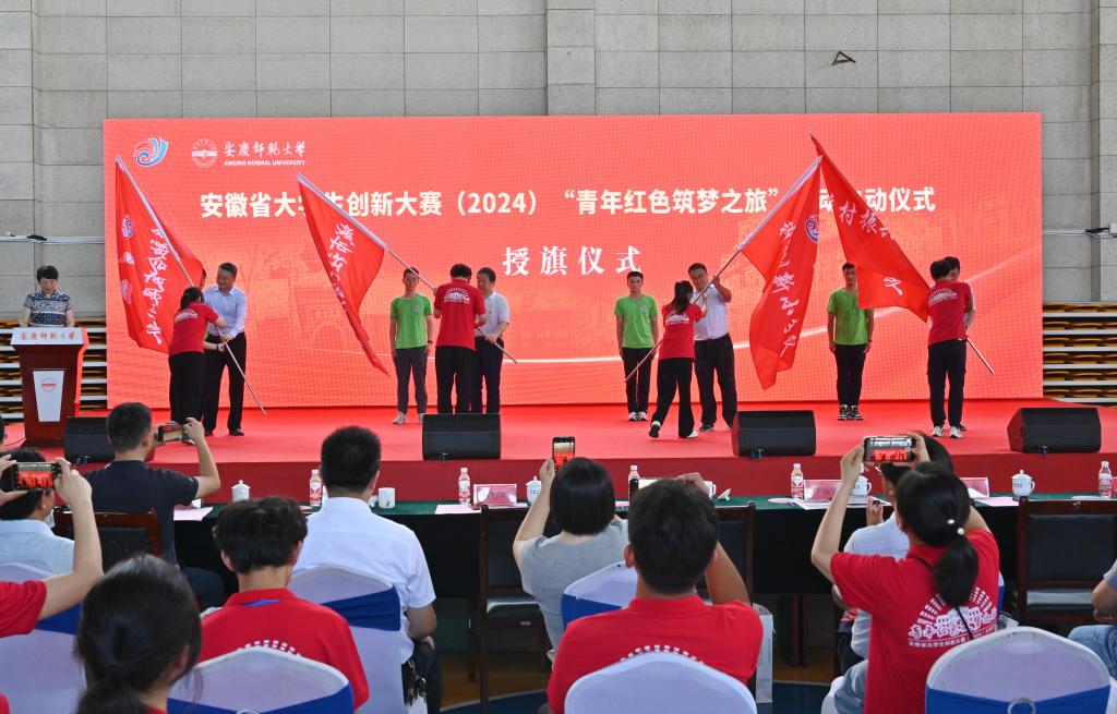 启动仪式以“科技创新”“乡村振兴”“城市社区治理”和“城乡融合发展”四支实践活动小分队授旗开启了大赛的序幕。启动仪式结束后,全体参会人员参观了安庆师大校园特色文化展,并赴安庆市烈士陵园开展研学活动。通过研学,勉励广大师生不忘峥嵘岁月、铭记先烈功勋,传承红色基因、坚定理想信念,努力成为能够担当民族复兴大任的时代新人。