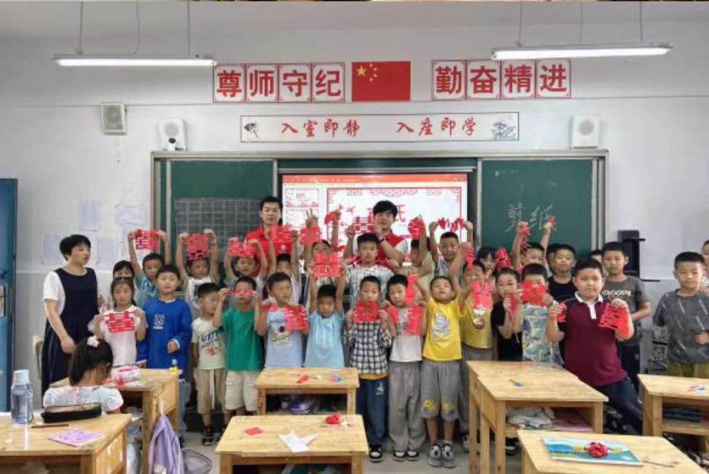 为助力乡村教育振兴,为乡村留守儿童带来知识与收获,淮理学子化身临时教师,为孩子们带来精彩纷呈的课程和体验。在淮北市杜集区梧桐村,“七彩假期,筑梦‘红淮’”支教实践团成员从红色故事讲解、硬笔书法课程到手势舞学习,支教实践团成员以课堂为载体连接学生,用知识传递能量,用心灵感受温度。