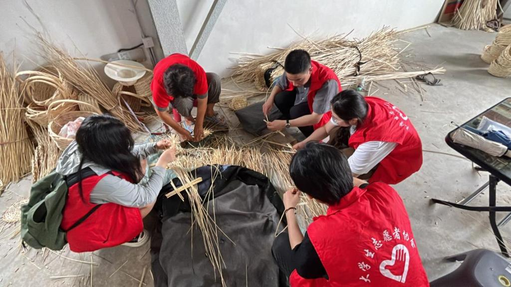 为深入了解阜阳黄岗柳编的现状、面临的挑战及未来发展潜力,推动这一传统技艺的传承与发展。经济与管理学院实践团队在阜阳市阜南县黄岗镇深入安徽紫亿工艺品有限公司、阜南县金源柳编工艺品有限公司等企业的生产一线,见证了柳编生产的各个环节并亲身体验了简单的柳编手法,了解了其由工厂接收订单下发至农户家庭生产的模式,以培养团队成员敢于挑战、勇于尝试的精神。