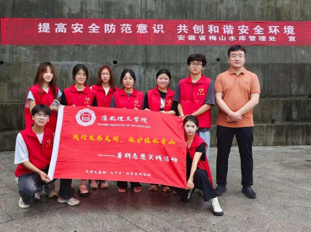 “践行生态文明,保护绿水青山”实践团赴六安市金寨县梅山镇践行环保理念、推广环保知识。生态文明守护队通过咨询当地政府、问卷调查以及与村民和游客面对面交流的方式,了解当地居民对生态环境的认识。实践团成员们带着扫帚、垃圾袋等工具,清扫卫生、清理垃圾,保护梅山水库及周边生态环境。