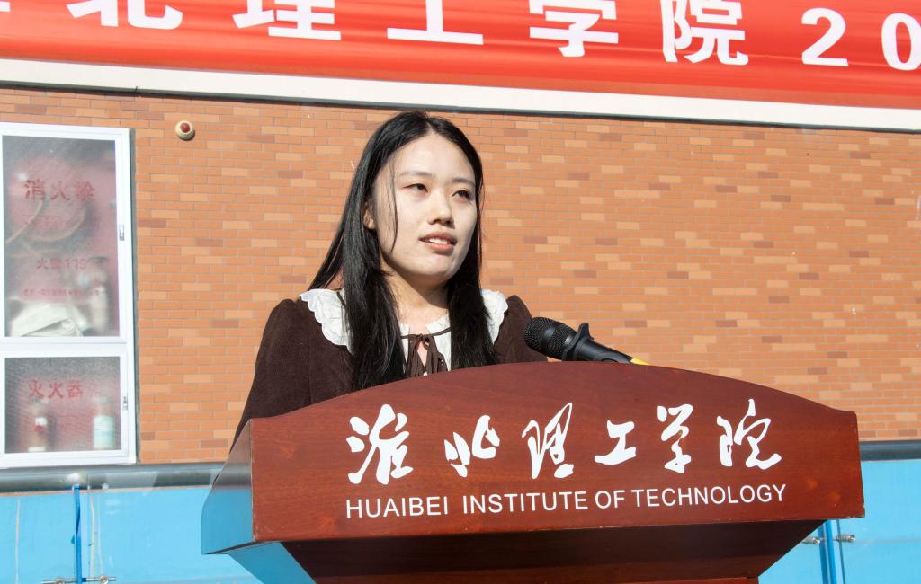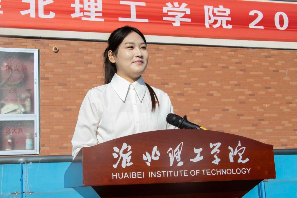 来自教育学院的孙会会老师作为教师代表发言,她结合自己的个人经历,鼓励新生们始终坚持初心,积极面对大学生活,珍惜大学时光,通过在校的学习和实践中学以致用、知行合一,找到属于自己的人生道路,勇敢追求梦想,最终成为有为的时代青年。