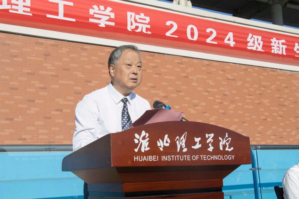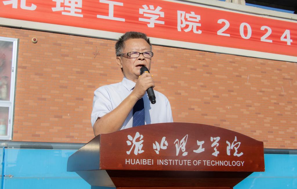 9月22日上午8时,学校2024级新生开学典礼暨军训总结大会在田径运动场上隆重举行。伴随着雄壮的国歌声,五星红旗在全校师生的注目礼中冉冉升起,开学典礼暨军训总结大会正式拉开帷幕。2024级全体新生身着迷彩装,以昂扬的精神面貌等待接受主席台的检阅,汇报训练成果。杜集区人武部部长胡后金莅临典礼现场。校党委副书记、校长杨兵,党委书记朱德顺,党委副书记、纪委书记、副校长汪建利,副校长郑来纪,各部门负责人、各二级学院院长、副院长及2024级全体辅导员参加典礼。典礼由汪建利主持。