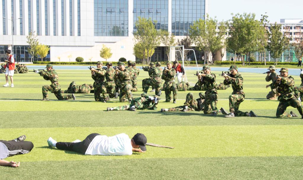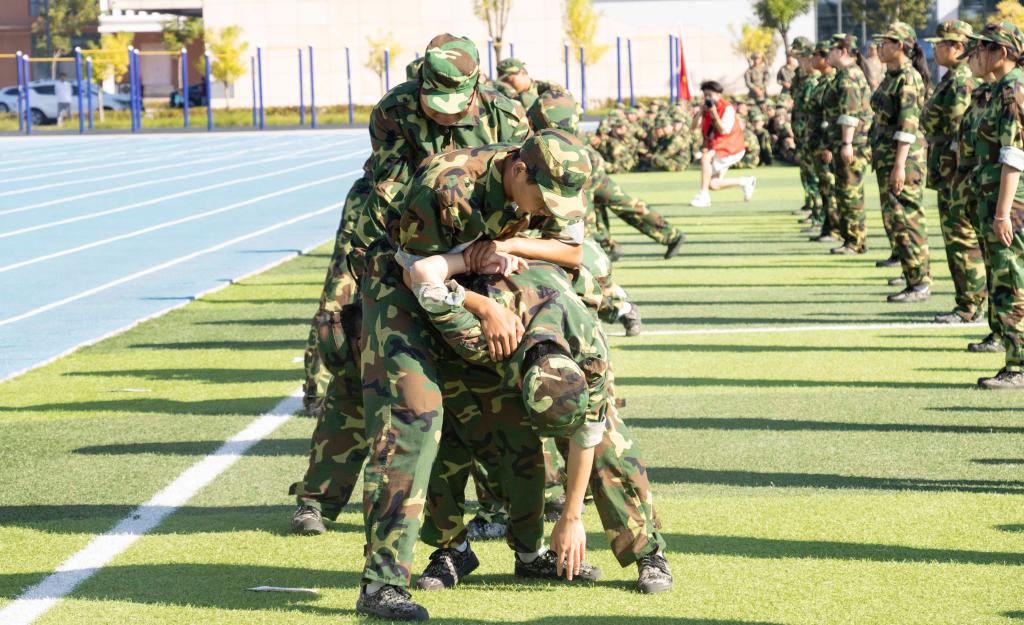 随后,军训汇报表演成为全场瞩目的焦点。各院系或班级组成的方队,在教官的指挥下,迈着整齐的步伐,喊着响亮的口号,依次通过主席台接受检阅。方队成员穿着统一的迷彩服,精神饱满,动作协调一致,他们以挺拔的身姿、坚定的眼神,向大家展示了军训的成果,从他们身上,我们看到了汗水与坚持,感受到了青春的活力与力量。在军训汇报表演的同学们中,军体拳方阵的同学们身着迷彩服,动作刚劲有力,拳风呼啸,每一招每一式都透露出军人的果敢与勇猛,这不仅是一场视觉的盛宴,更是对自我极限的挑战和超越;格斗术方阵的同学们迅速变换队形,模拟实战中的掩护、进攻、撤退等战术动作,展现了良好的战术素养和团队协作能力,他们每一个动作都精准到位,让人仿佛置身于真实的战场之中;匕首操与棍术表演方阵的同学们手持匕首或木棍,动作流畅而有力,时而如猛虎下山,时而如蛟龙出海,展现了中华武术的博大精深和军人的英勇无畏;战术方队的同学们更是将大会表演推向高潮,烟雾散出,空气中弥漫着紧张的味道,在反恐演习中,他们全副武装,手持各自的武器,翻过重重的障碍,在成功救出人质之后,战士们脸上自信从容坚毅的表情,俨然是一个个训练有素的精英。在全体同学的共同努力下,全体师生共同观看了一场盛大精彩的视觉盛宴。
