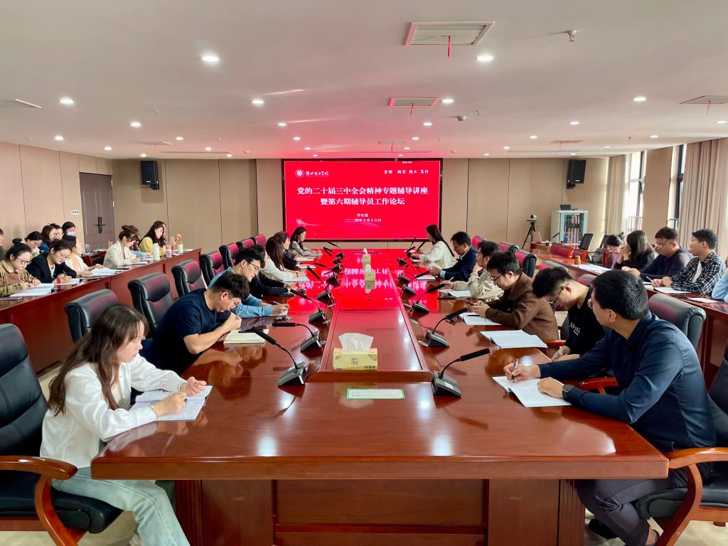 为深入学习贯彻党的二十届三中全会精神,提升辅导员队伍的政治素养和工作能力,10月16日上午,伟德在行政楼814会议室举办党的二十届三中全会精神专题讲座暨第六期辅导员工作论坛。本次活动邀请马克思主义学院教师孙澄澄担任主讲人,学生处处长孙增响、教育学院党总支副书记孟向红以及全体辅导员参加了会议。