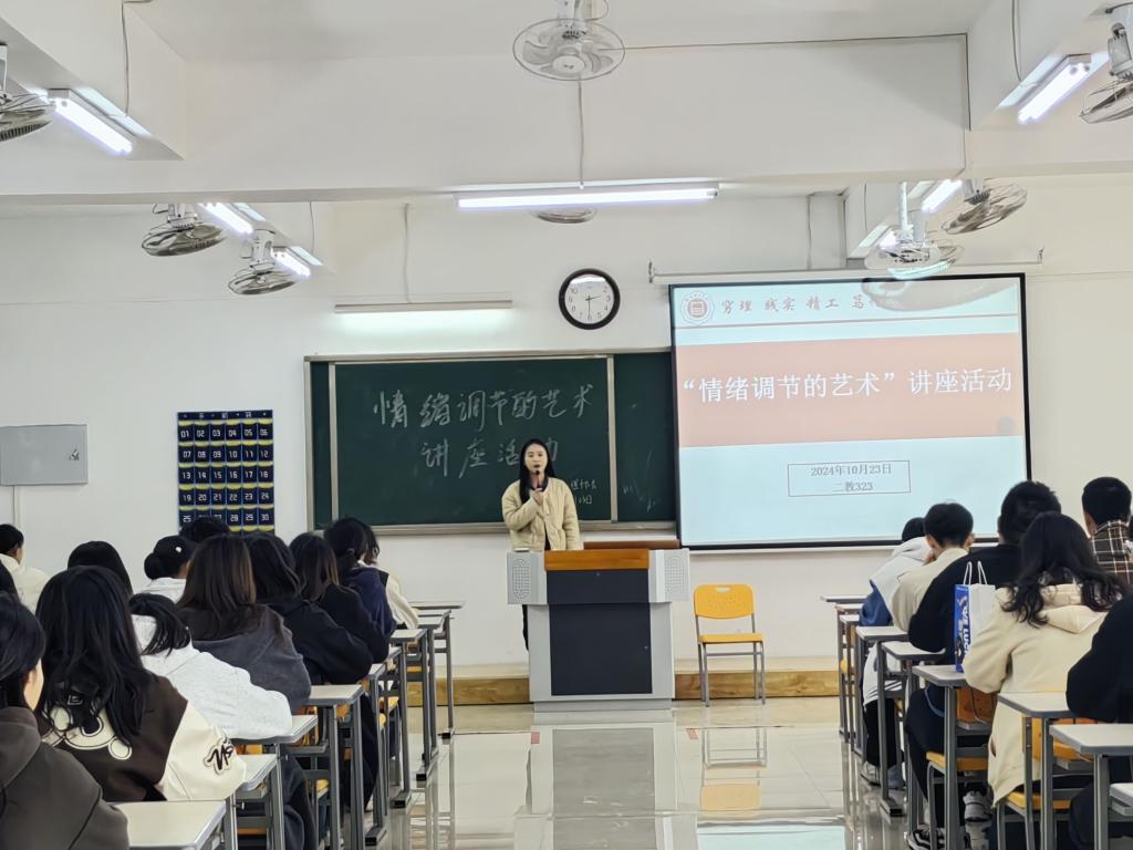 10月23日,校心理中心在二教323教室举办题为“拥抱情绪,智慧生活—情绪调节的艺术”专题讲座。讲座中,校心理中心臧彤彤老师分享了实用的情绪调节技巧,帮助学生们培养乐观向上的心态。参与同学积极互动,体验情绪管理的实际应用。讲座不仅是知识的传递,更是心灵的启迪,激发学生对自我成长的思考。