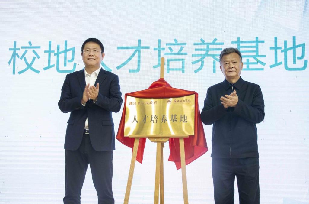 在活动最后,杨兵与鲍锐共同为“校地人才培养基地”揭牌,此次揭牌仪式只是起点,今后校地双方将会进一步加强合作,规范联培基地建设,提升学生培养质量。