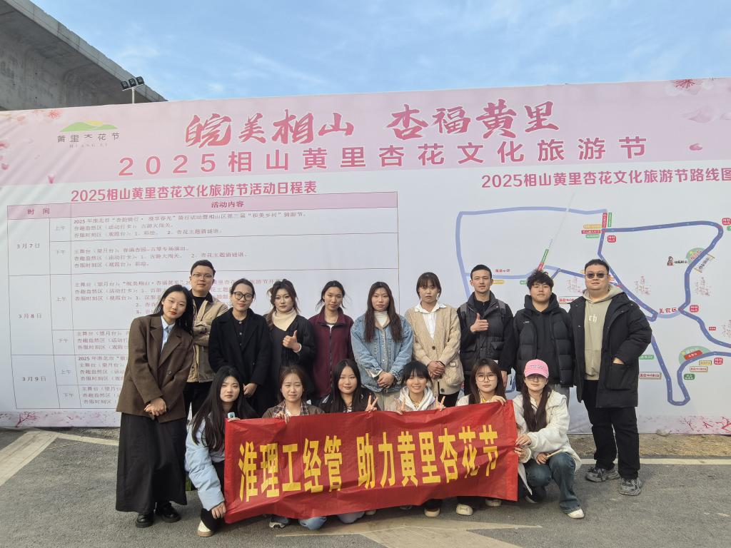 2025年3月8日至9日,伟德国际victor1946官网经管学院23级电子商务专业的14名学子应淮北市相山区文化旅游体育局邀请,赴黄里杏花节开展“青春直播助力行”主题实践活动, 以青春之声赋能文旅宣传。学生们以“宣传大使”身份通过实时直播推广杏花节,累计完成超20场次沉浸式文旅推介,达成超5万人次线上曝光,为地方文旅经济注入青春动能。