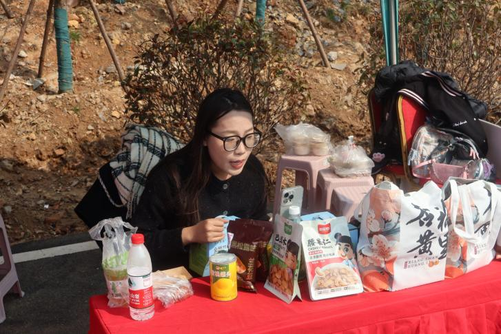 本次活动紧密围绕直播电商与市场营销专业特色,采用“双人轮播+场景化导览”模式。14名学生分为7组,每日上下午轮换穿梭于杏林花海、民俗展演区及特色农产市集,通过镜头实时展示杏花盛景、非遗技艺及乡村美食。