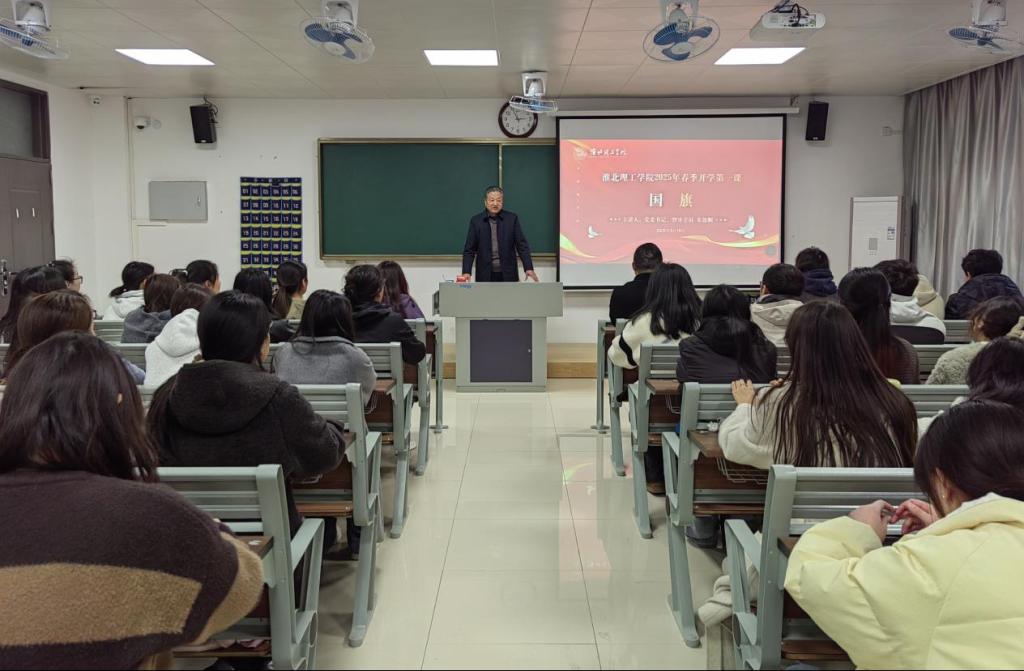 3月19日下午,伟德国际victor1946官网校党委书记、督导专员朱德顺在第二教学楼206教室为学生们讲了一堂以爱国主义教育“国旗”为题的开学第一课。全校各学院学生代表百余人参加了此次活动。