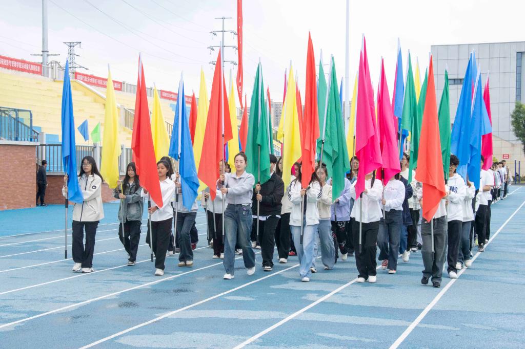伴随着激昂的运动员进行曲,国旗、校旗、会旗、彩旗方队,裁判员、运动员方队依次入场。他们步伐整齐、精神抖擞、口号响亮,展现了伟德学子朝气蓬勃、积极向上的精神风貌。
