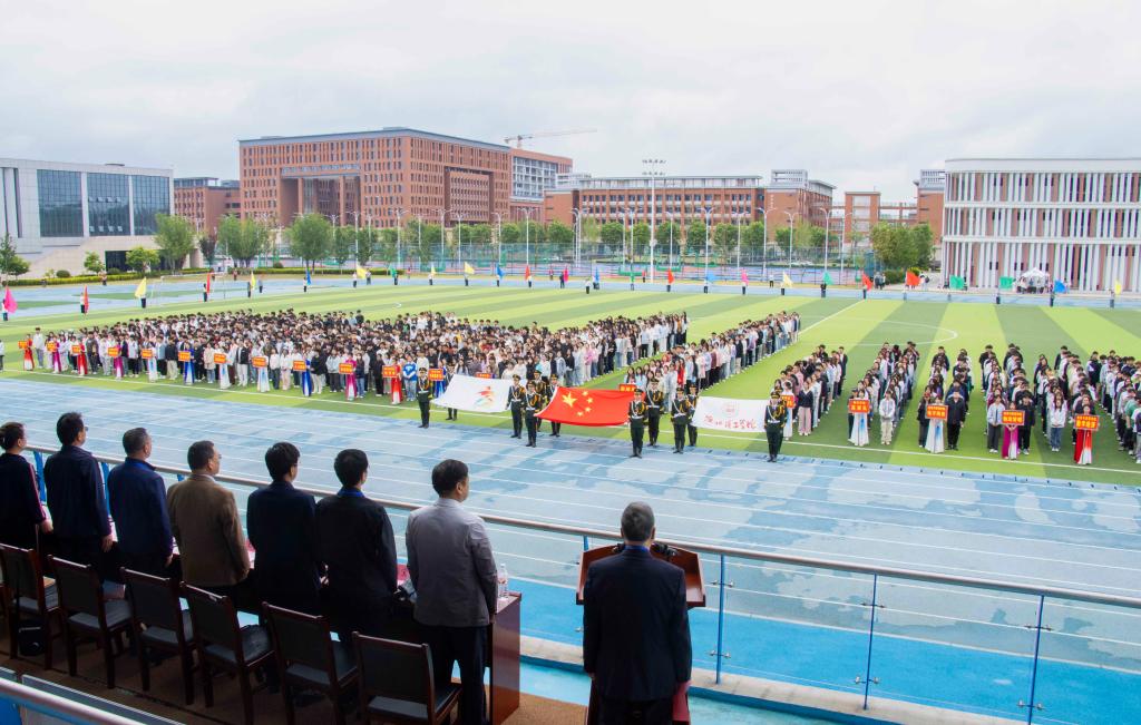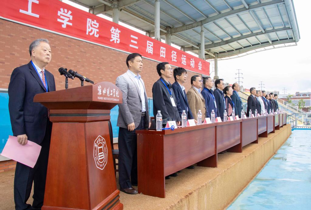 校党委书记、督导专员朱德顺致开幕词,他代表学校对本次运动会的顺利举办表示热烈祝贺;向精心筹备本届运动会的领导、老师和工作人员表示诚挚的谢意;向全体运动员、裁判员致以亲切的问候和良好的祝愿。同时指出,学校高度重视学生体育运动和健康教育,积极推进体育运动的全面发展,学校体育水平逐步提升。此次运动会是一场富有激情与梦想的盛会,也是一场师生员工共同参与的盛会,希望全体运动员弘扬“穷理、践实、精工、笃行”的校训,尽情的在赛场上挥洒青春和汗水,努力夺取运动水平和精神文明双丰收。