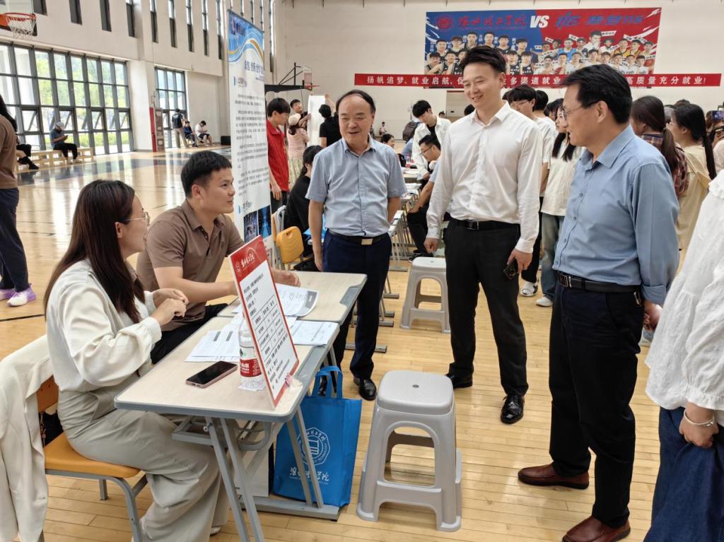 学生处处长孙增响、招生就业处副处长张拓以及电子与信息工程学院院长朱昌杰来到现场与企业深入交流沟通,并亲切询问学生关于就业中问题,帮助学生与企业建立良好的联系。此次华为生态企业专场招聘会是学校落实就业工作的重要举措之一。学校一直以来高度重视学生的就业工作,积极与企业建立紧密的合作关系,通过举办各类招聘会、开展就业指导和培训等活动,为学生提供全方位的就业服务。此次招聘会的成功举办,不仅为学生提供了更多的就业选择,也为学校与企业之间的深度合作奠定了坚实基础。