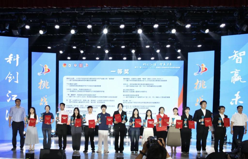 第十一届“挑战杯·华安证券”安徽省大学生课外学术科技作品竞赛自2025年2月启动以来,超过10万名学生参赛,108所学校择优报送1165件作品参加角逐,829件项目参加省级复赛,经过省级复赛评审,最终,86所高校350个项目入围省级决赛。经过激烈角逐,能源材料与化工学院推荐项目《守护好一江碧水,共建清洁美丽长江——安徽省长江流域生态保护与可持续发展守护者》,凭借鲜明的主题、扎实的实践和优异的答辩表现从中脱颖而出,获得竞赛一等奖。